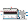 Die Lüfter, der Motor und das Antriebssystem befinden sich außerhalb des feuchten Abluftstromes, wodurch sie vor Feuchtigkeit, Kondensation und Eisbildung geschützt sind. Somit ist ein ganzjähriger Betrieb des Geräts möglich.