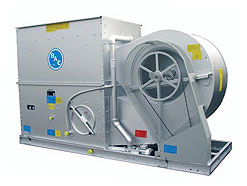 Radiallüfter können den durch ein externes Kanalsystem erzeugten statischen Druck überwinden, deshalb ist auch eine Innenaufstellung dieses Gerätetyps möglich.